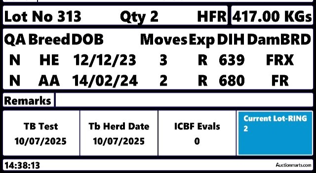 Wednesday 21 Jan, Ring 1, Cow, Bulls, Sucklers, Bullocks & Heifers, Start 00:00